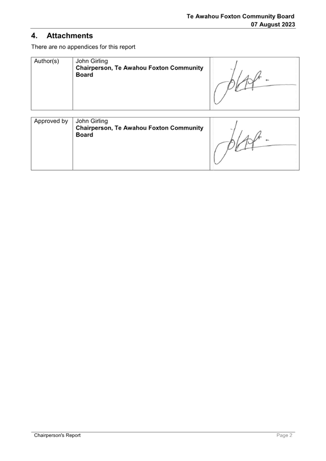 6.2 Chairperson's Report - Te Awahou Foxton Community Board 11