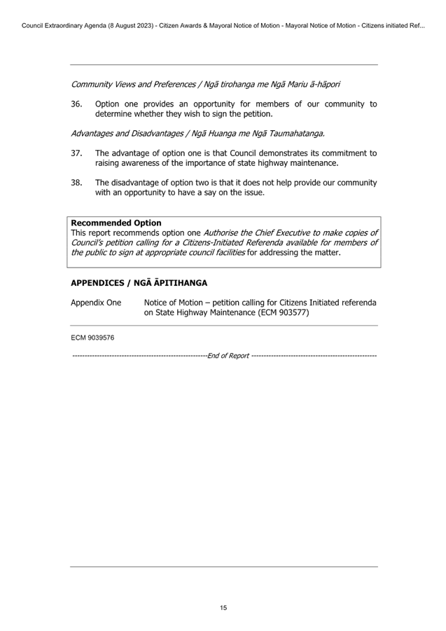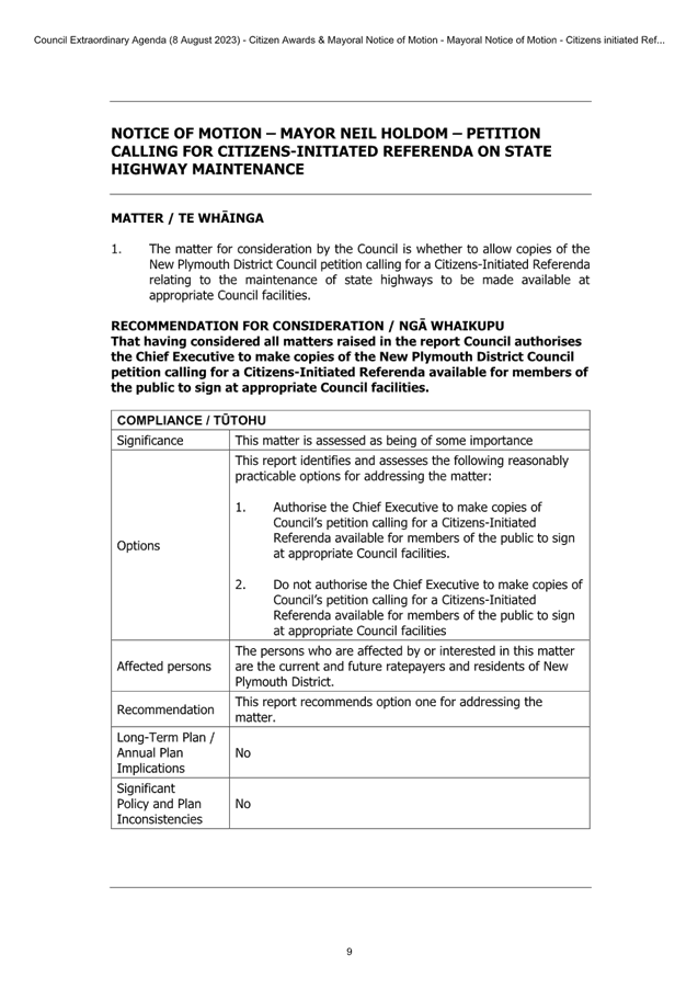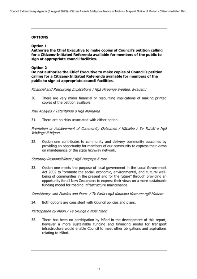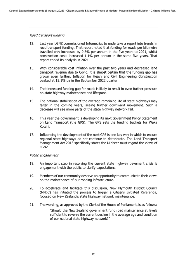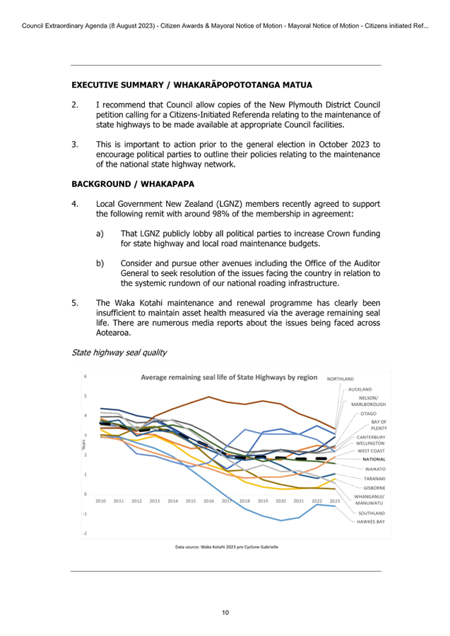7.3 Support for Petition Calling for Citizens Initiated Referenda on State Highway Maintenance 47