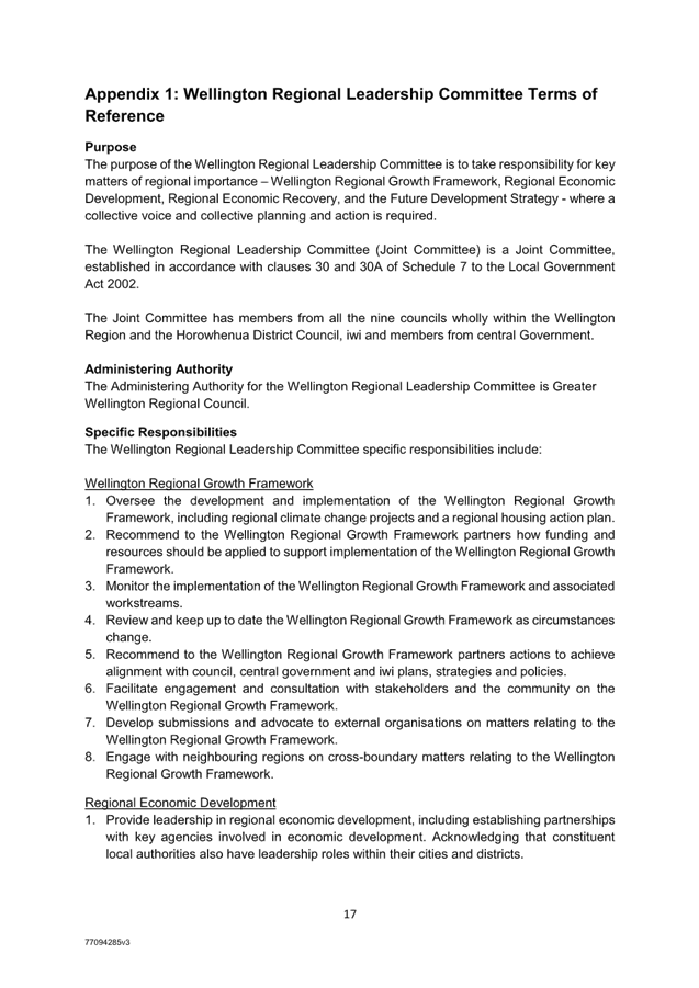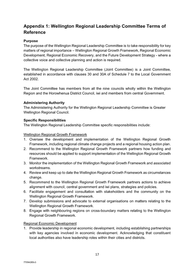 7.7 Wellington Regional Leadership Committee - update to Terms of Reference to incorporate the Future Development Strategy 75