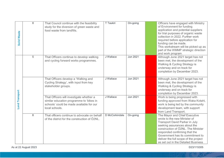 8.3 Council Resolution and Actions Monitoring Report August 2023 179